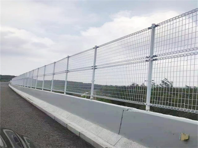 網孔:50x150mm 50x200mm 網(wǎng)片做折彎處理、即達到美觀、又能增強抗衝擊力,支柱采用(yòng)圓管:48mm*1.5mm、60*1.5mm方管:50*50*1.5mm、60*60*1.5mm上邊5cm、下邊(biān)8cm的梯形立柱、頂部做135度的(de)彎頭處理、底部加200x200mm法蘭盤焊接而成,以上規格可加工定(dìng)製。